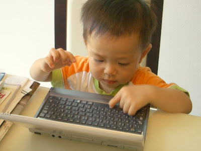 We try not to disturb Ethan when he's focussed on a task at hand because he really concentrates on it... often he can't hear you when his mind is occupied anyway. We checked with Grandma who says that Ivan was exactly the same when young! So Ethan is just like Daddy! His facial expression when concentrating is also just like Daddy!